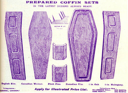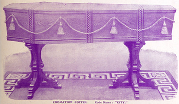 Provision of the coffin is central to the work of the funeral director. For many years coffins were hand crafted using elm and oak, but greater use of technology has been adopted the twentieth century and today the majority of coffins are machine constructed. Two factors have particularly impacted upon coffins. First, cremation authorities stipulated that easily combustible wood be used, along with coffin furnishings made from non-metallic materials. Secondly, the ravages of Dutch elm disease required the industry to seek alternatives, such as imported woods and non-solid boards like chipboard or medium-density fibreboard that could be covered in foil, veneer or cloth. Today a wide range of coffins and caskets are offered, including cardboard, wicker, bamboo and those decorated with images.