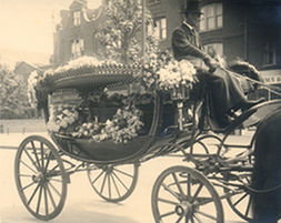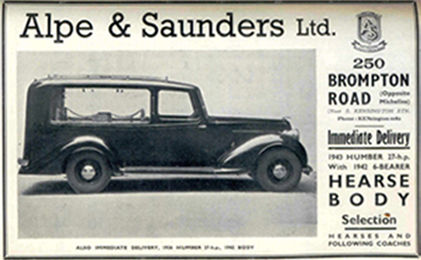 The motor hearse first made an appearance on London’s streets around 1906. Initially used for transporting coffins in a closed compartment, by the 1920s they were regularly appearing on funerals. Both forms of transport continued until the late 1940s, before the horse drawn hearse finally disappeared. However, their absence was only brief and much prominence was given to their return during the funerals of some notorious east end gangsters. The first motor hearses were, literally, the coffin compartment of a horse hearse secured to the chassis. As time has progressed the makes of funeral vehicles have largely reflected those adopted for domestic use: in the 1920s to 1940s Daimler, Austin and Rolls Royce, while Humber and Princess followed in the 1950s. A decade on Ford’s and Vauxhall’s were popular, while more recently Volvos, Jaguars and Mercedes have appeared. The Daimler DS 420 was held by many funeral directors to be the all-time classic funeral vehicle.